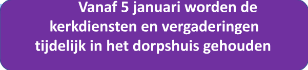 In de komende periode wordt het gebouw verder geïsoleerd en krijgt de entree en hal een opkap beurt. Hierdoor is het niet mogelijk om in deze periode de kerk te gebruiken voor de wekelijkse erediensten of vergaderingen. Wij hebben tijdelijk onderdak gevonden in het dorpshuis ’t Hörnhuus in Kornhorn (ca 200 meter verderop) Hornhuusstraat 13, 9464PL Kornhorn